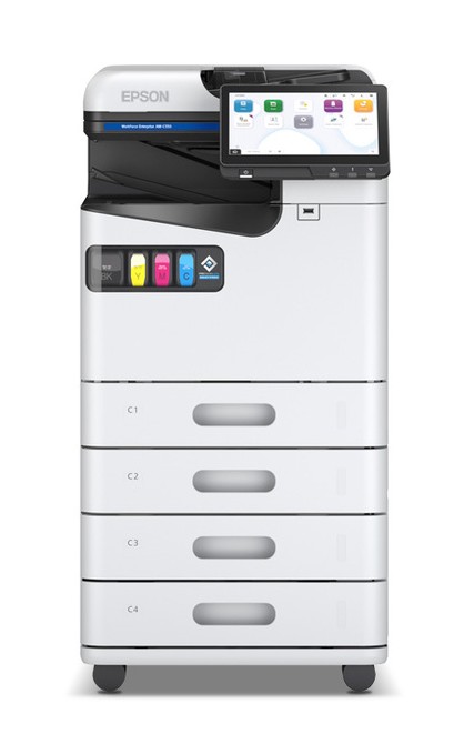 The WorkForce® Enterprise AM-C400 A4 Color MFP delivers powerful business productivity with print speeds up to 40 ISO ppm†, high-performance scanning, a fast first page out and Legal-sized media support. Powered by revolutionary PrecisionCore Heat-Free technology, it’s engineered for exceptional reliability and provides outstanding image quality, along with the lowest power consumption in its class1—up to 55% lower vs. color laser printers1. Remarkably flexible to fit virtually any workspace, the AM-C400 can be configured as either a desktop or floor-standing unit with the option to add up to three cassettes for a total of five paper sources. And it offers a user experience consistent with our WorkForce Enterprise AM Series A3 models, including a large, intuitive 10.1″ customizable color touchscreen for easy navigation and support for the Epson® Solutions Suite.